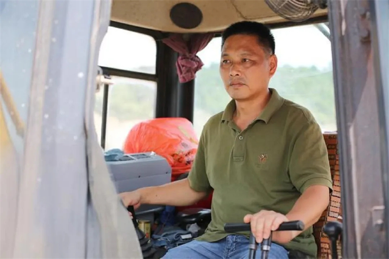 郑贞良在驾驶室操作机械铲车。图片由福建省文明办提供