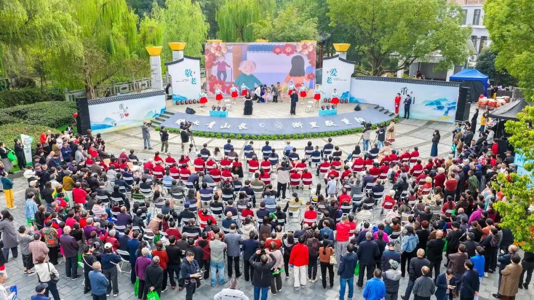 10月27日,在重阳节来临之际,2025年浙江省“我们的节日·重阳”主场活动在安吉县孝丰镇孝子公园举行。来自全省各地的22对金婚老人以及道德模范、身边好人、文明家庭代表等齐聚一堂,共庆佳节,沉浸式感受孝亲敬老的传统美德与时代新风。